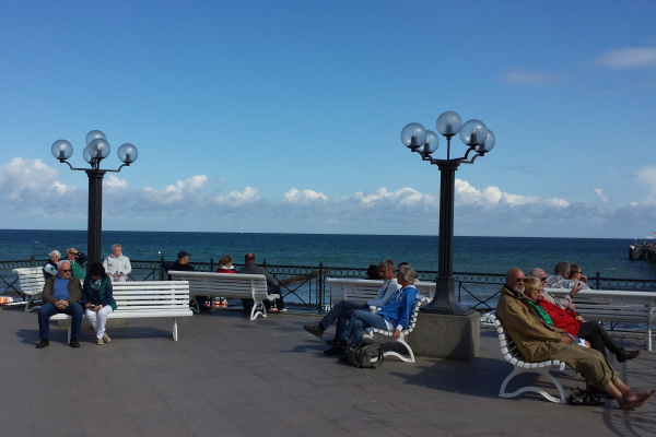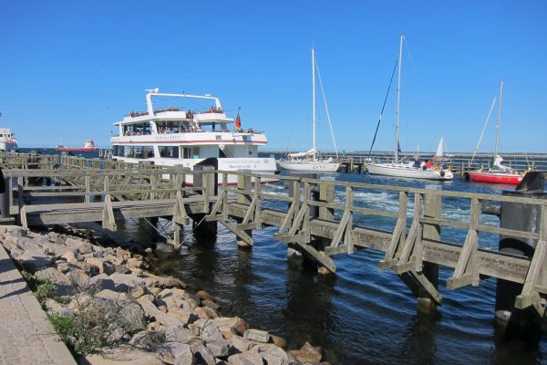 Der "Alte Strom" besticht mit seinen Fischkuttern und Fahrgastschiffen und den liebevoll sanierten, historischen Häusern. Auf der kilometerlangen Promenade und der Mole lässt es sich herrlich flanieren, im Yachthafen und an der Hafeneinfahrt gibt es immer was zu gucken und die zahlreichen Boutiquen, Restaurants und maritimen Kneipen verlocken zum Shoppen und Einkehren. Schon von weitem sehen Sie die Wahrzeichen von Warnemünde: Am östlichen Ende der Promenade stehen der 1897 erbaute Leuchtturm und der denkmalgeschützte Teepott mit seinem Hyparschalendach. Am Passagierkai sind Sie von Ende April bis Mitte Oktober den "Traumschiffen" dieser Welt ganz nah. An manchen Tagen legen bis zu drei auf einmal an – immer wieder ein beeindruckendes Schauspiel!